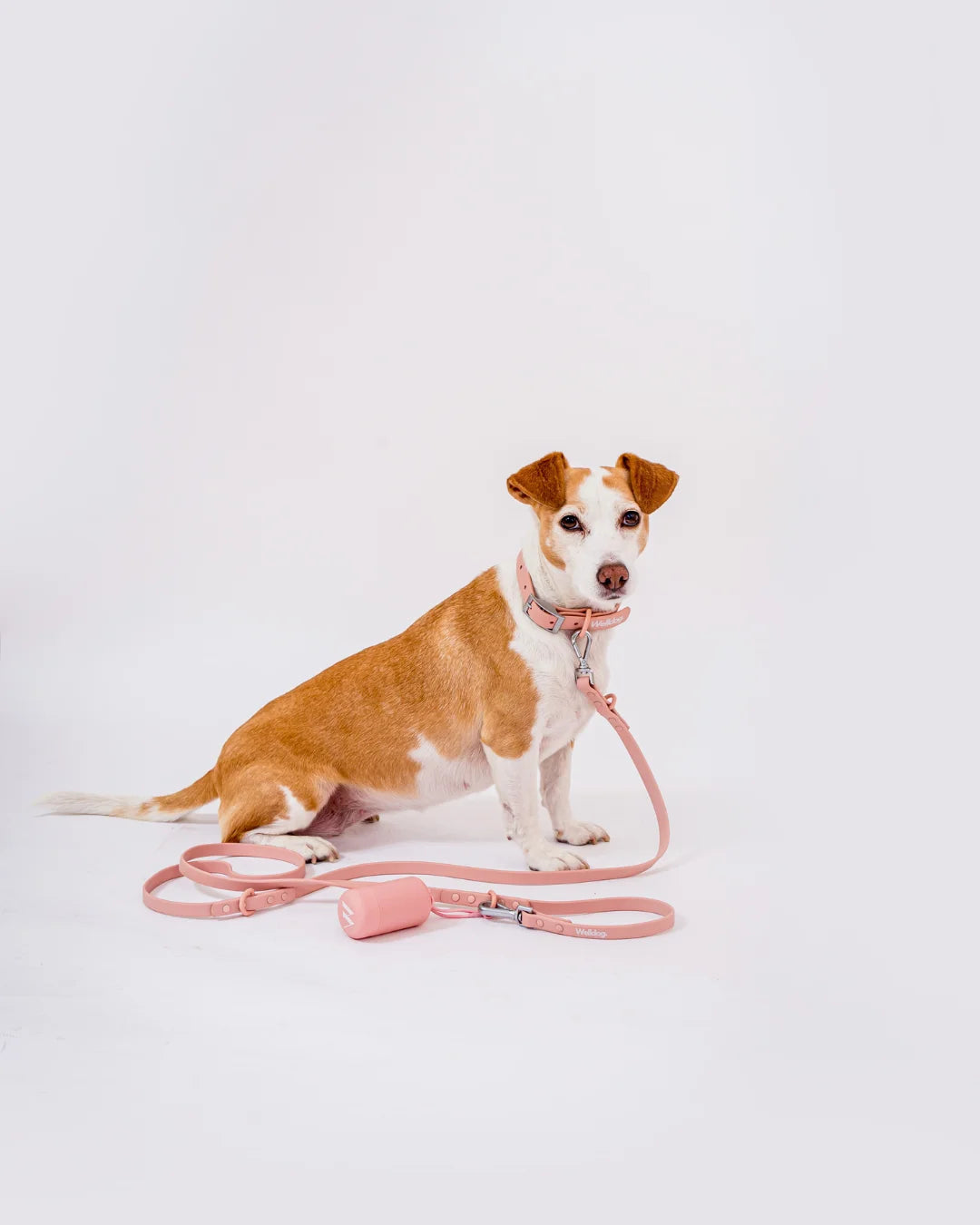 Aufeinander abgestimmtes Kit aus Geschirr, Schleppleine und Poop Bag Spender in passender Farbe.