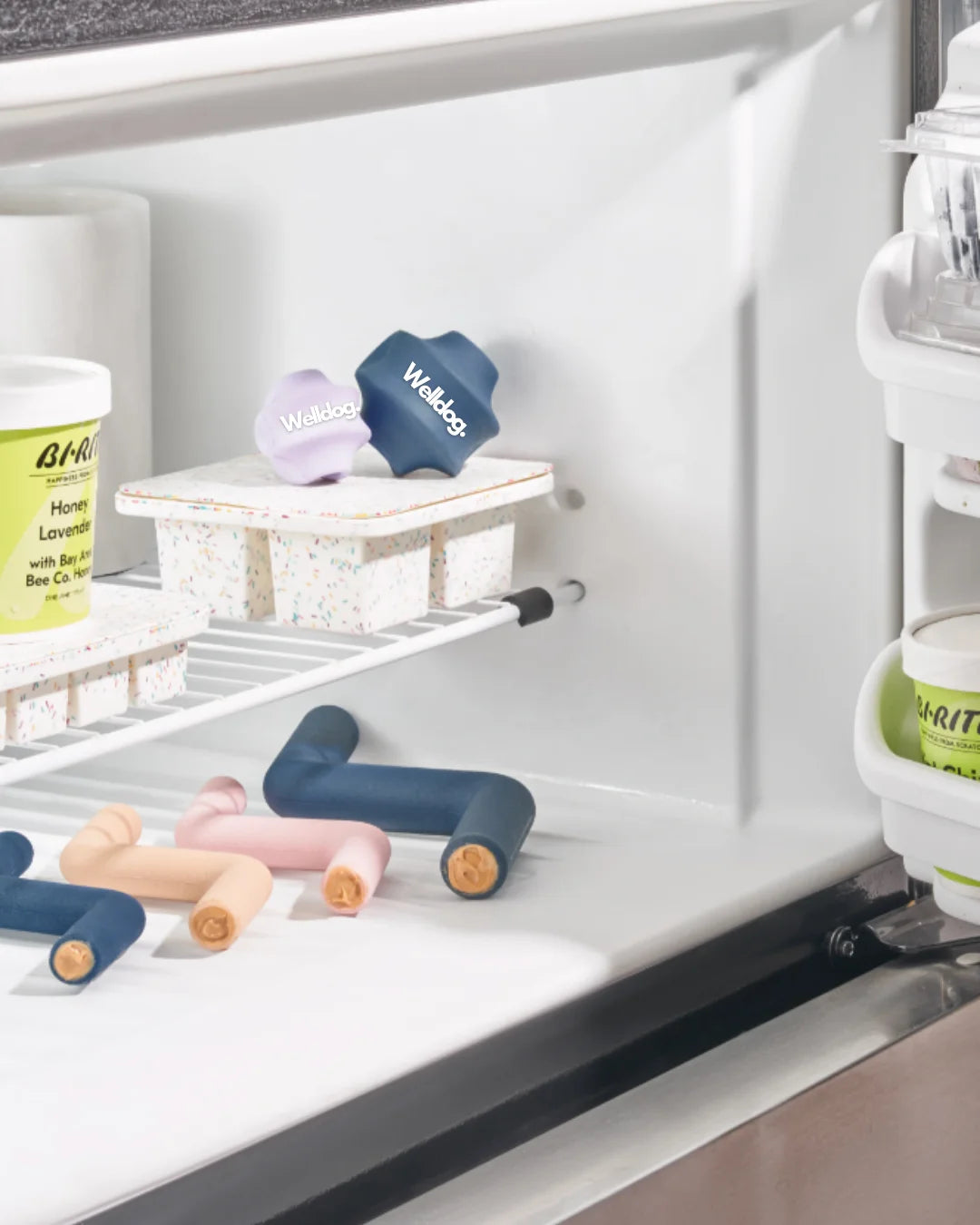 Ja, unsere Spielzeuge bestehen aus robustem Naturkautschuk und sind für den Gefrierschrank geeignet. Friere Welldog. Spielzeuge ein, um eine zusätzliche kühlende Wirkung zu erzielen und um Welpengeschwollenheit zu lindern. Stelle den BarkBite aufrecht hin und fülle das Innere mit Wasser, Erdnussbutter oder sonstigen Leckereien und friere ihn ein.