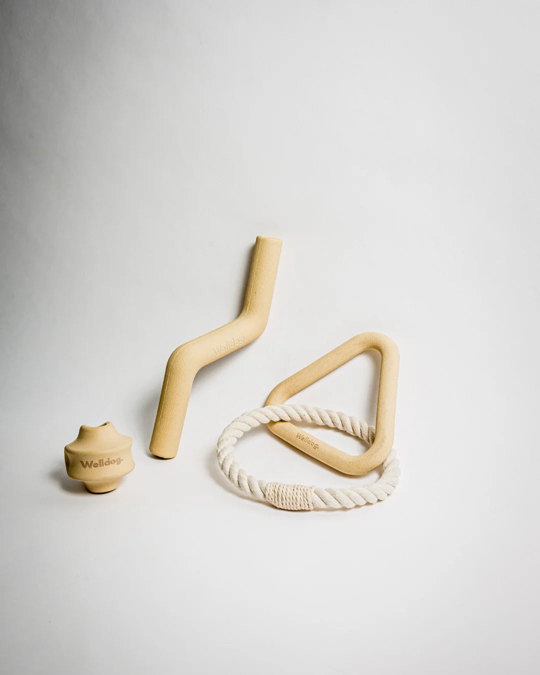 Alle drei Spielzeuge bestehen aus 100 % natürlichem Kautschuk – langlebig, kaustabil und leicht zu reinigen.