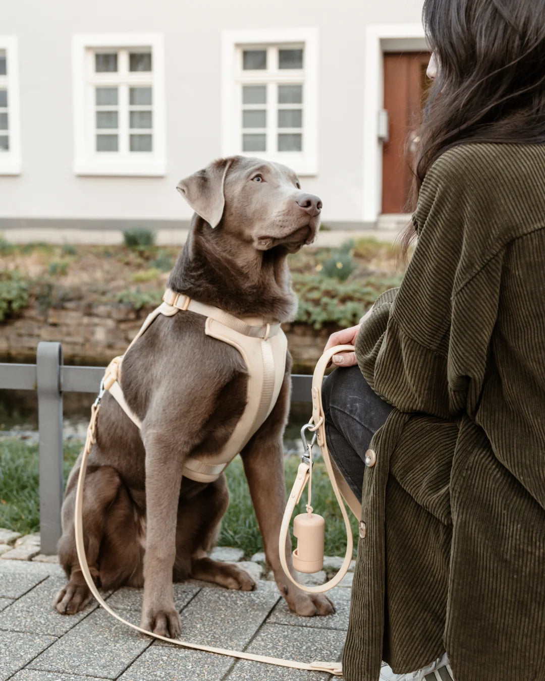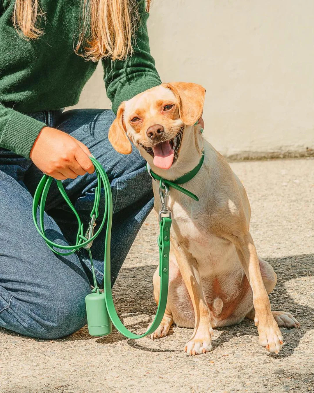 So ist der Poop Bag Spender bequem am Leinen-Griff befestigt und einsatzbereit für die nächste Gassirunde!