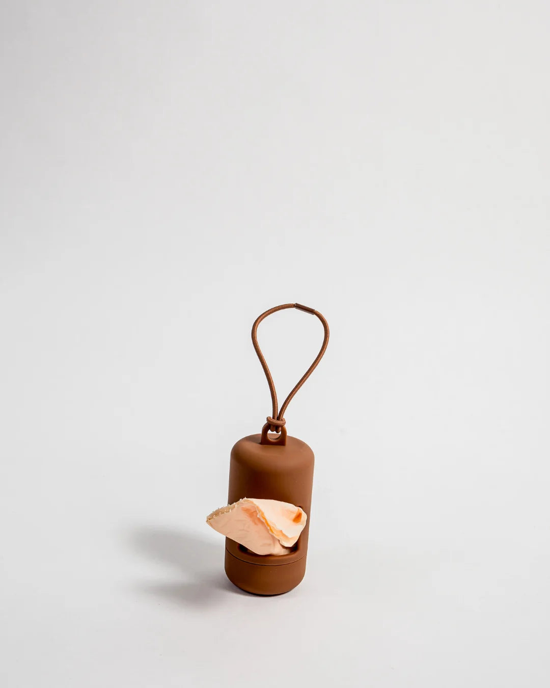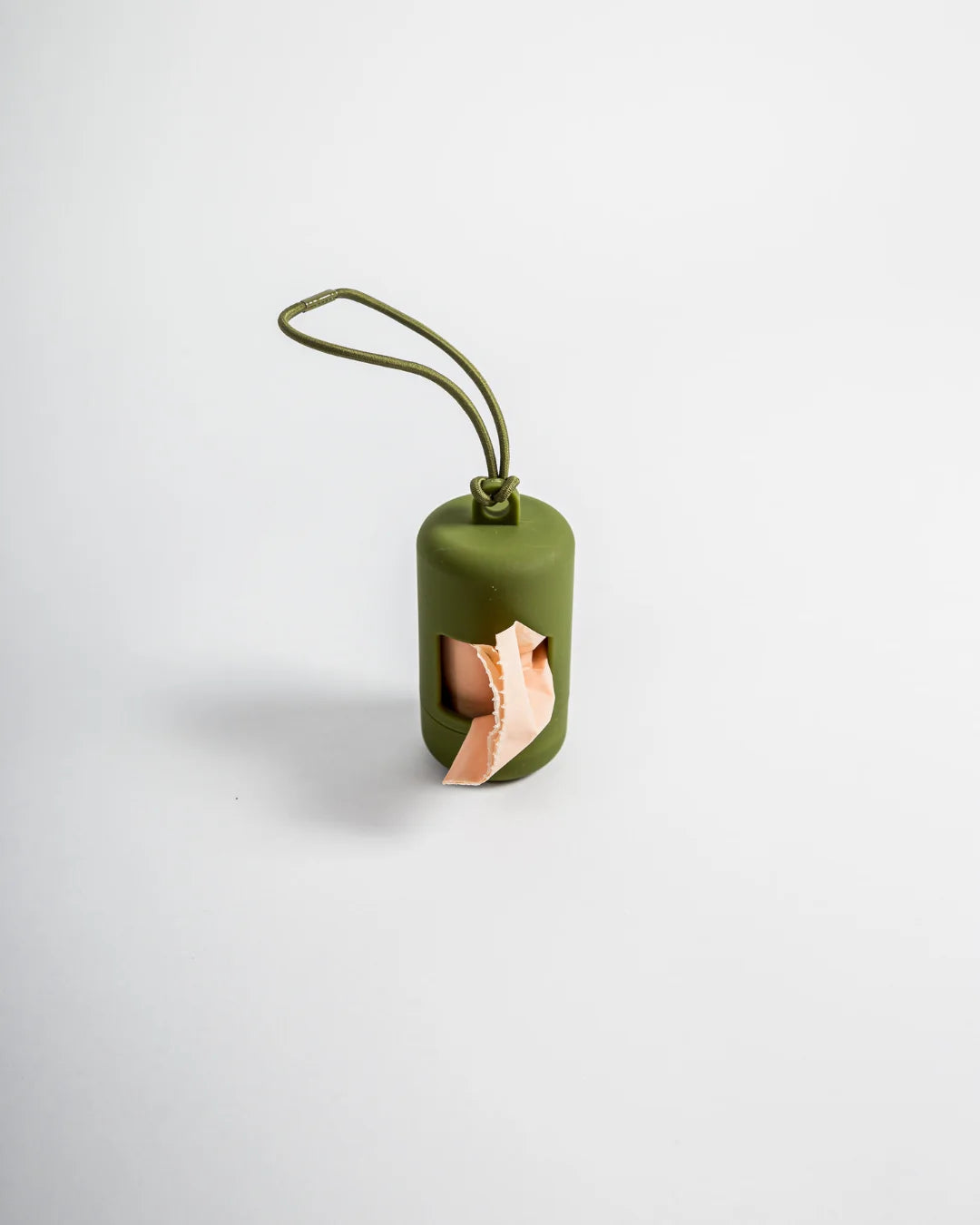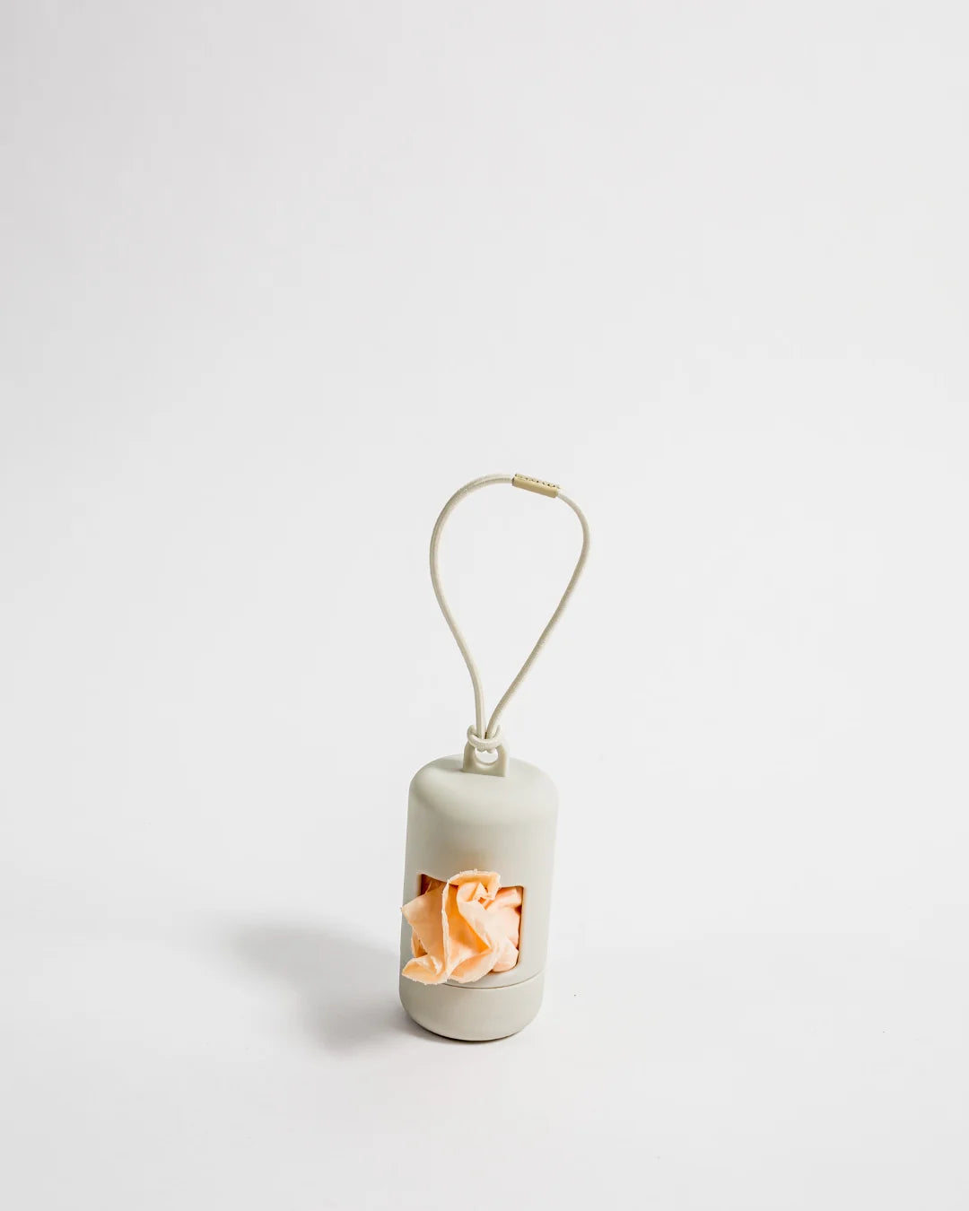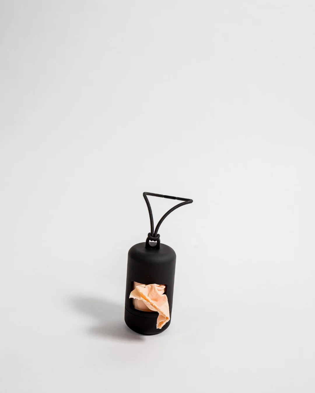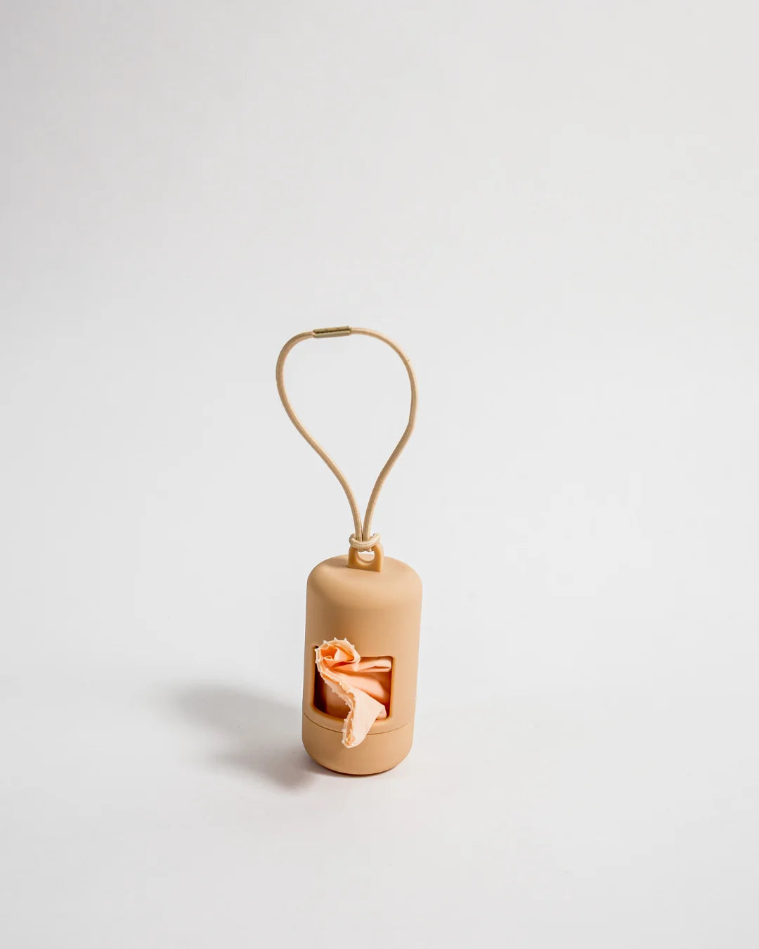 Wir empfehlen, den Poop Bag Spender am D-Ring des Leinen-Griffs zu befestigen. Du kannst das elastische Band des Poop Bag Spenders durch den Ring schieben und dann den Poop Bag Spender oben durch das elastische Band ziehen, um einen einfachen Knoten zu machen.