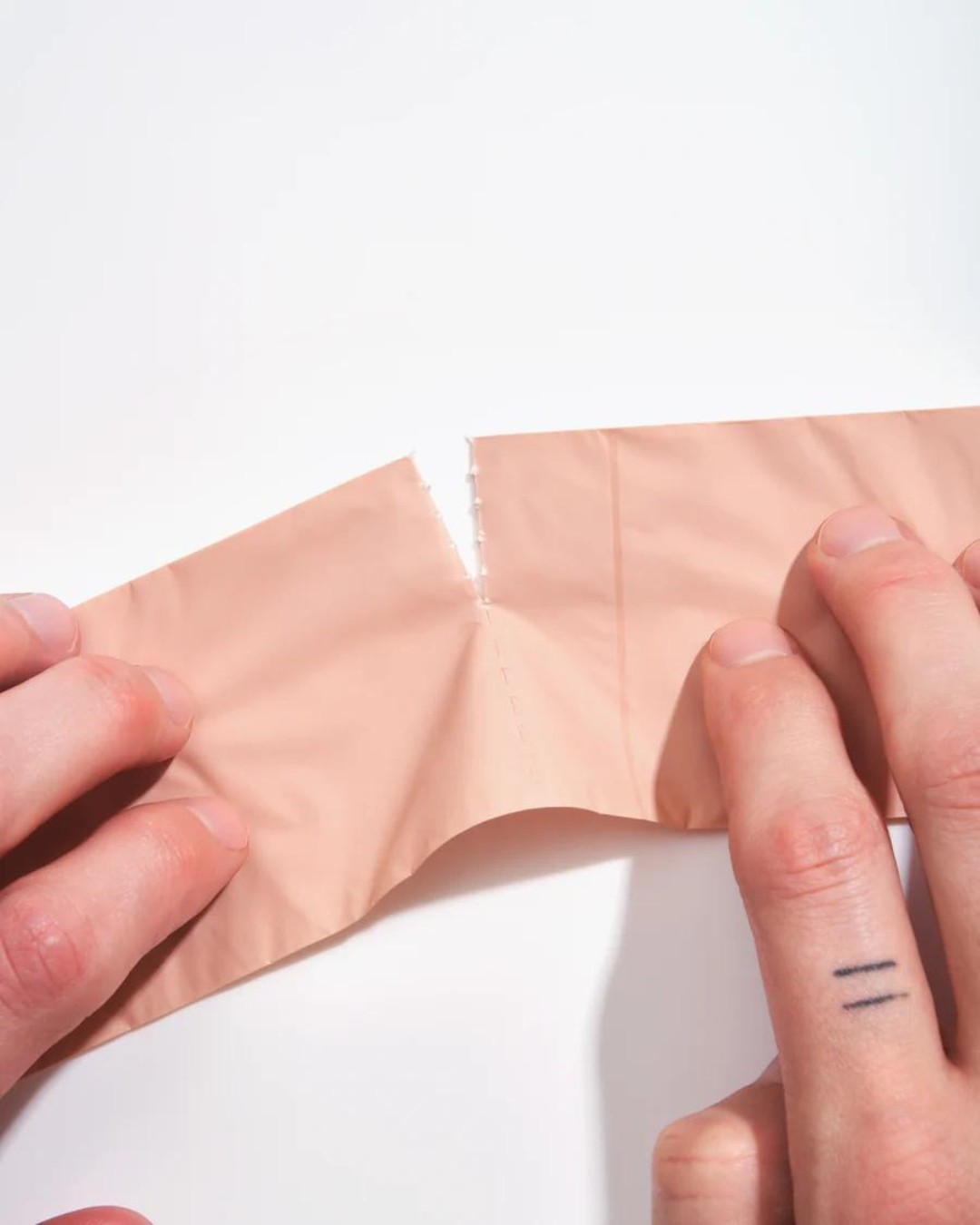 Wir empfehlen, den Poop Bag Spender am D-Ring des Leinen-Griffs zu befestigen. Du kannst das elastische Band des Poop Bag Spenders durch den Ring schieben und dann den Poop Bag Spender oben durch das elastische Band ziehen, um einen einfachen Knoten zu machen.