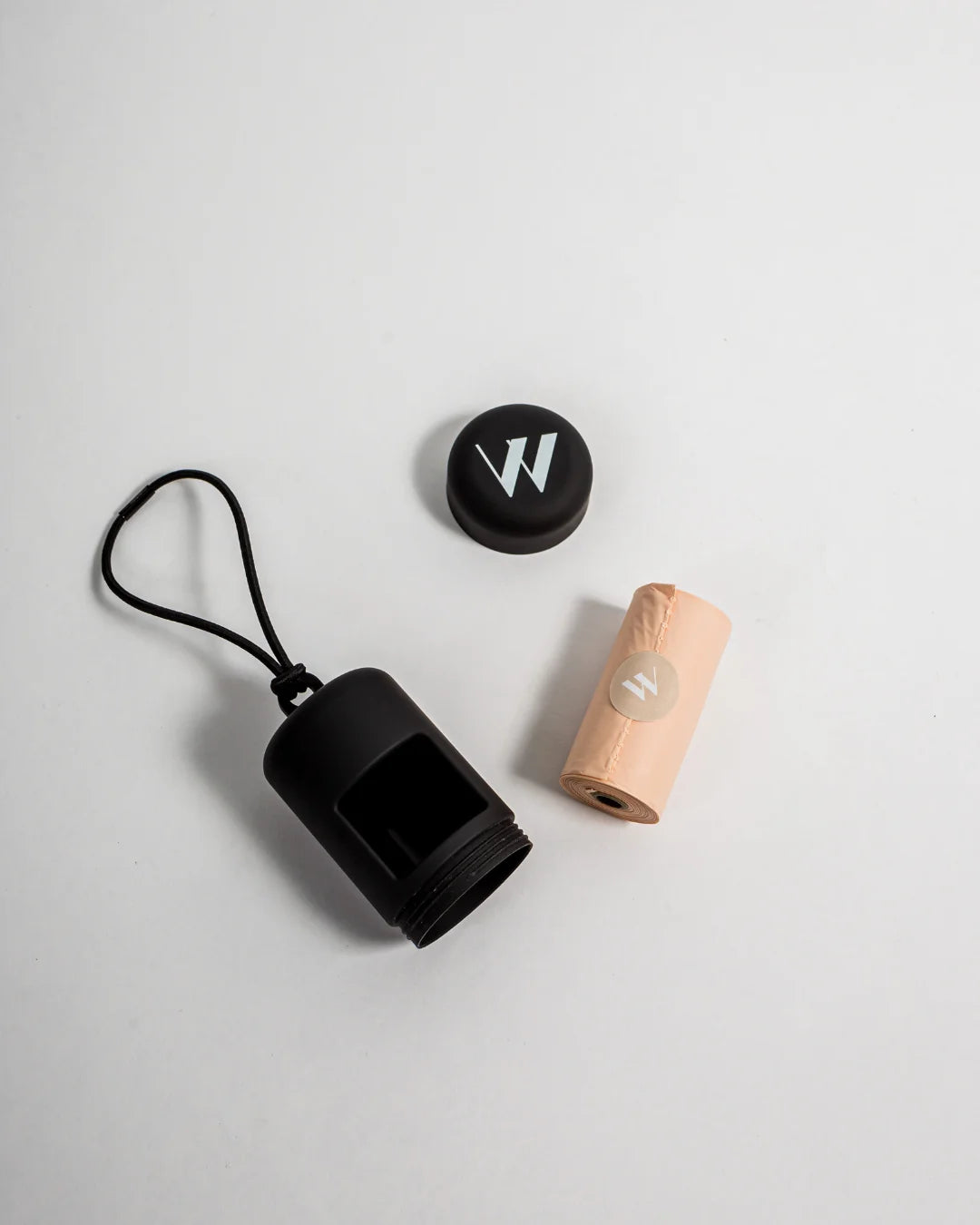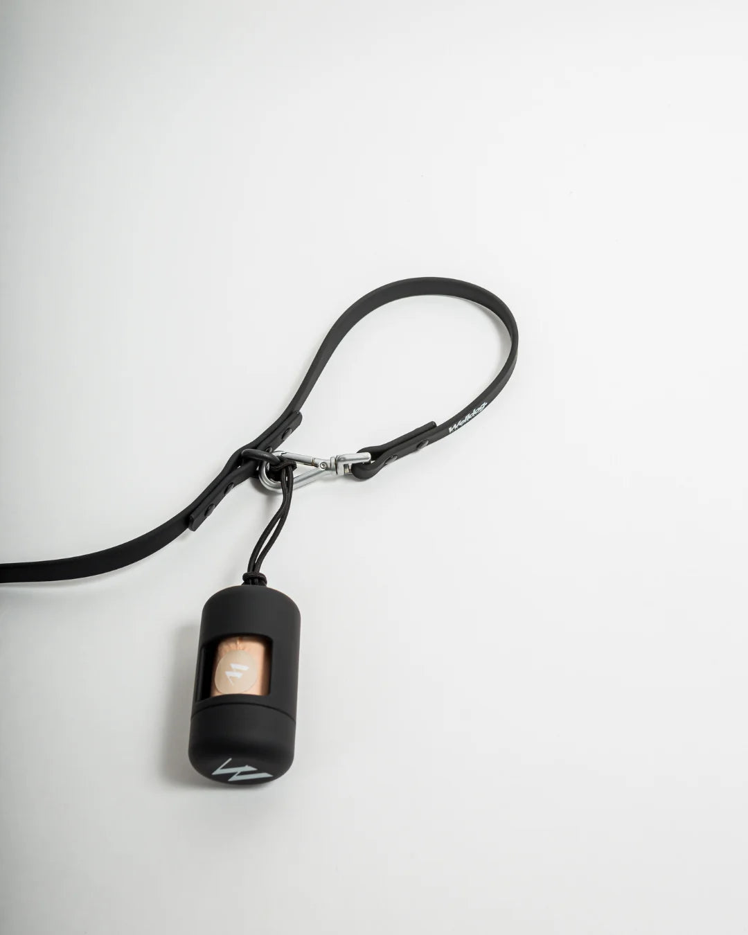 So ist der Poop Bag Spender bequem am Leinen-Griff befestigt und einsatzbereit für die nächste Gassirunde!