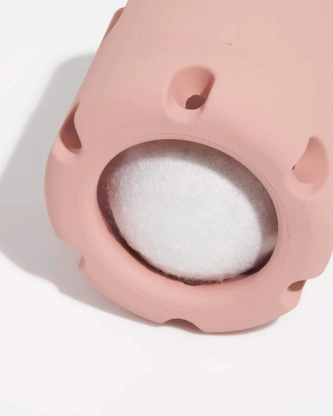 Gefertigt aus robustem Naturkautschuk, rollt die zylindrische Hülle leise, stabil und überraschend kontrolliert durch den Raum –
