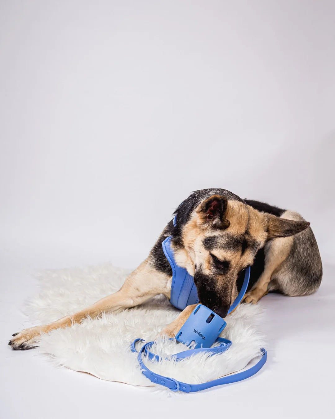 Die Leine und der Poop-Bag-Spender bestehen ebenfalls aus recyceltem Material.