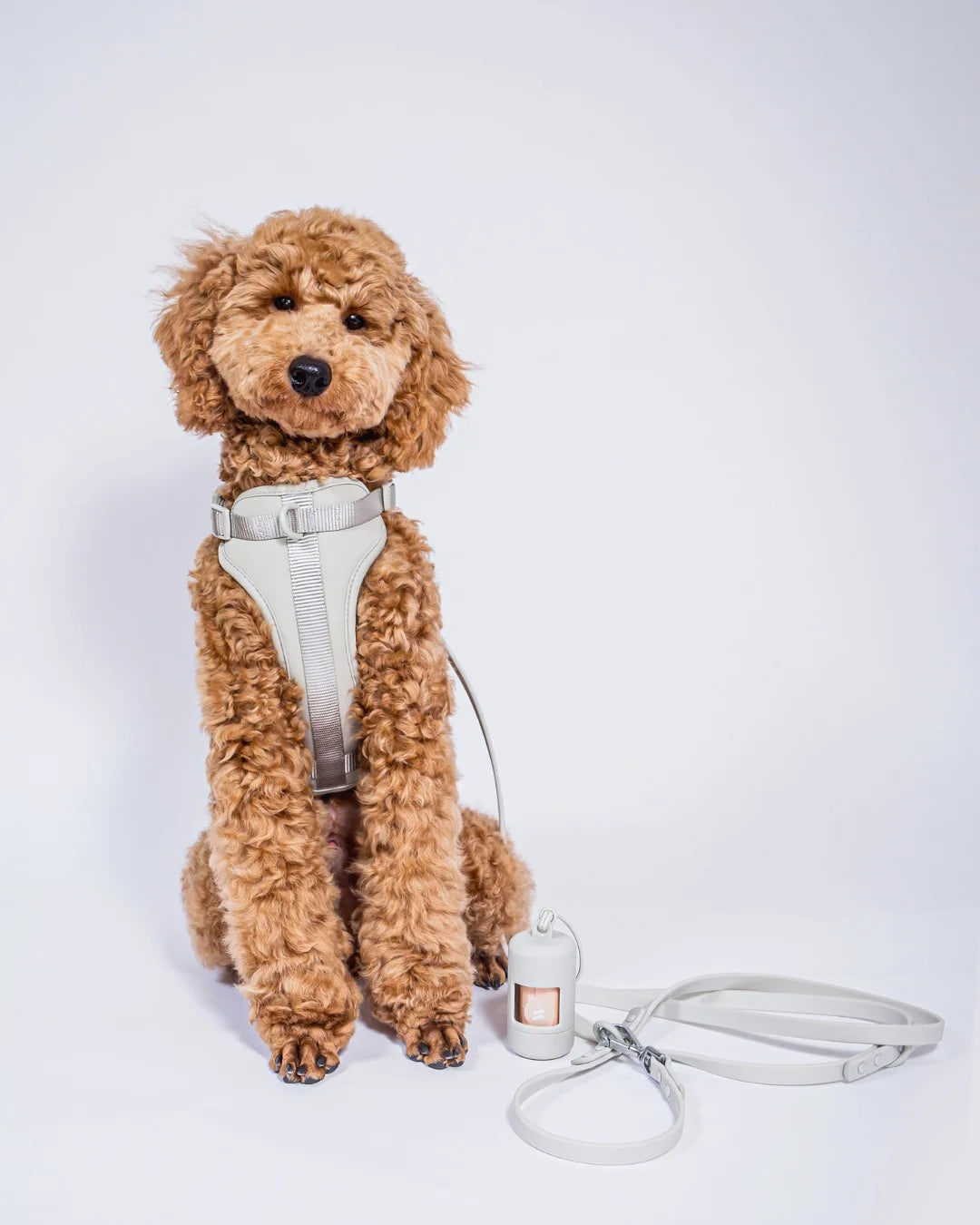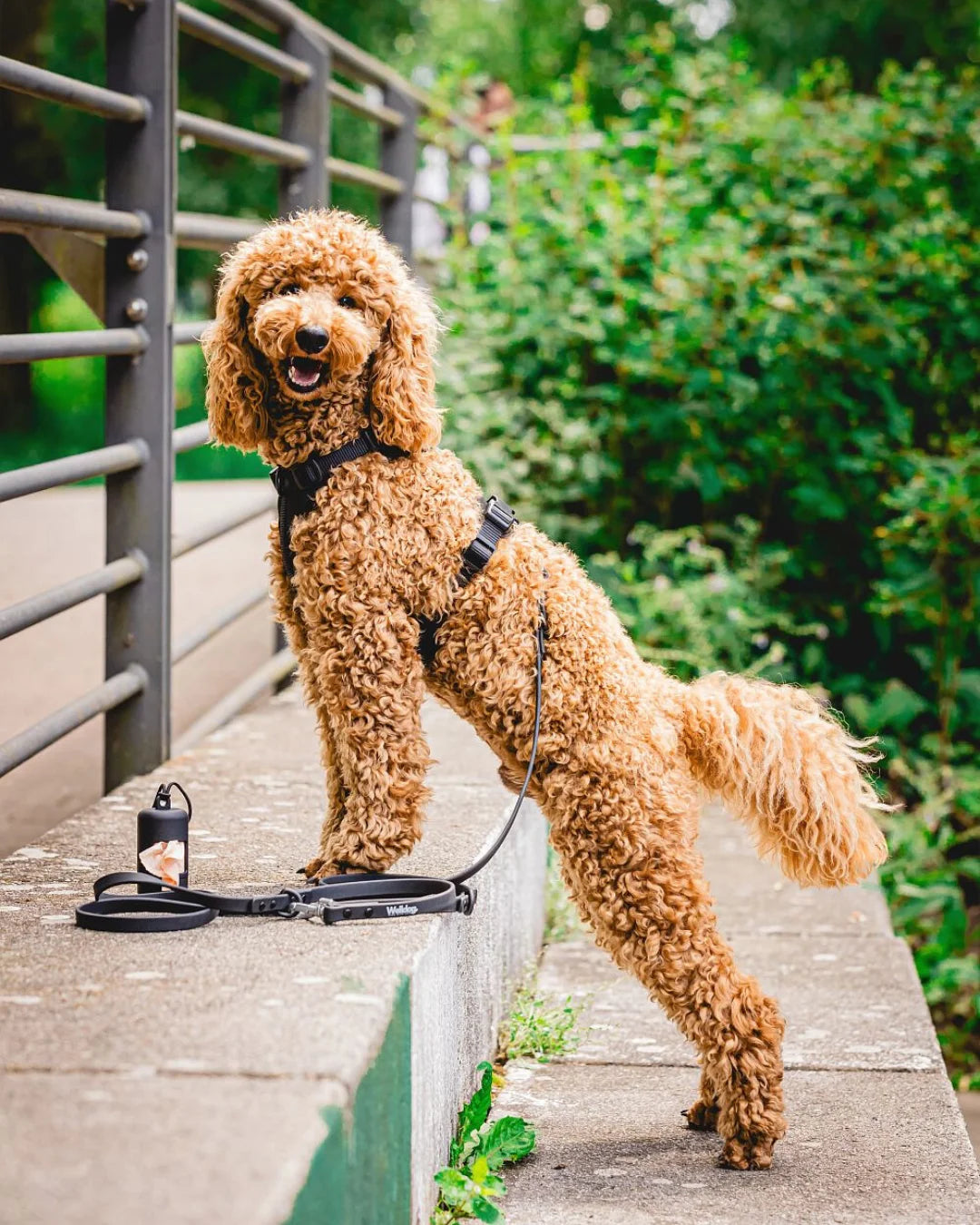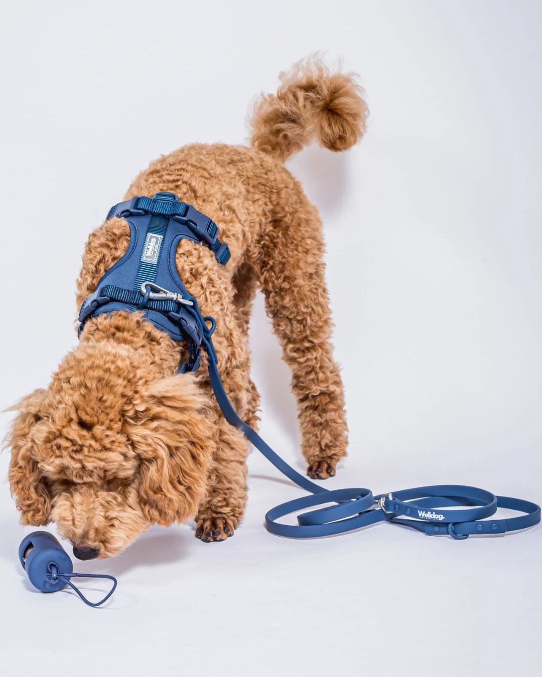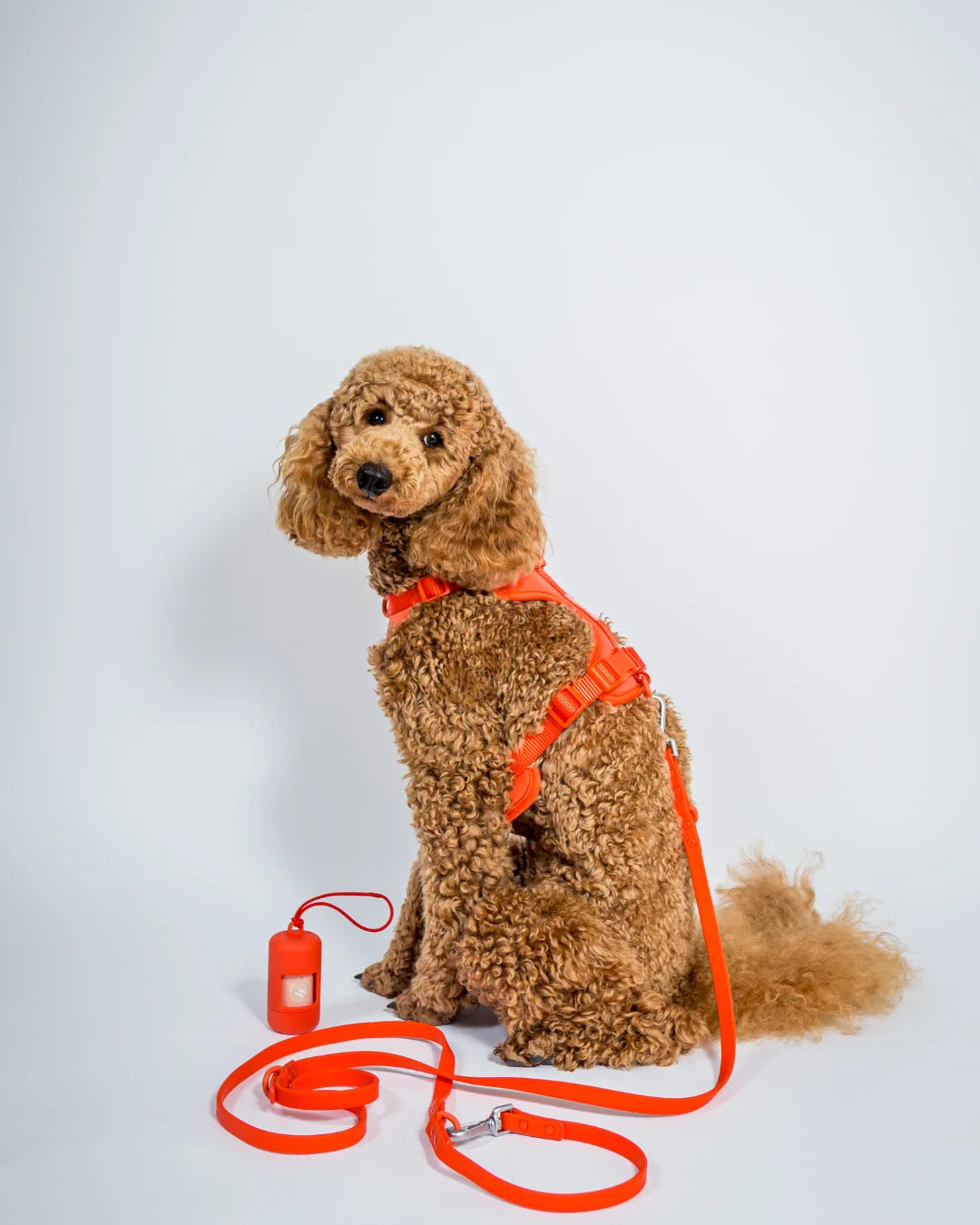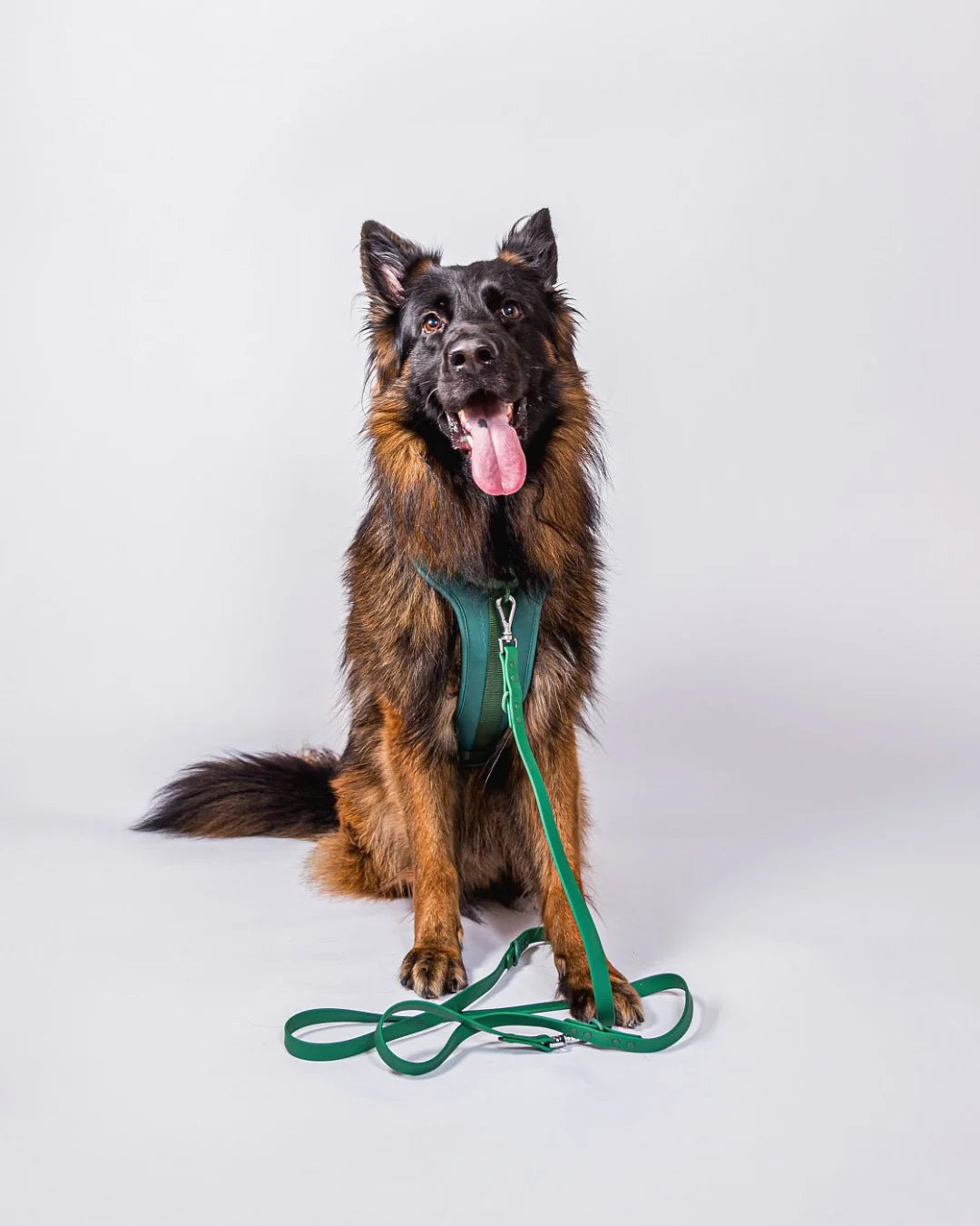 Die Leine und der Poop-Bag-Spender bestehen ebenfalls aus recyceltem Material.