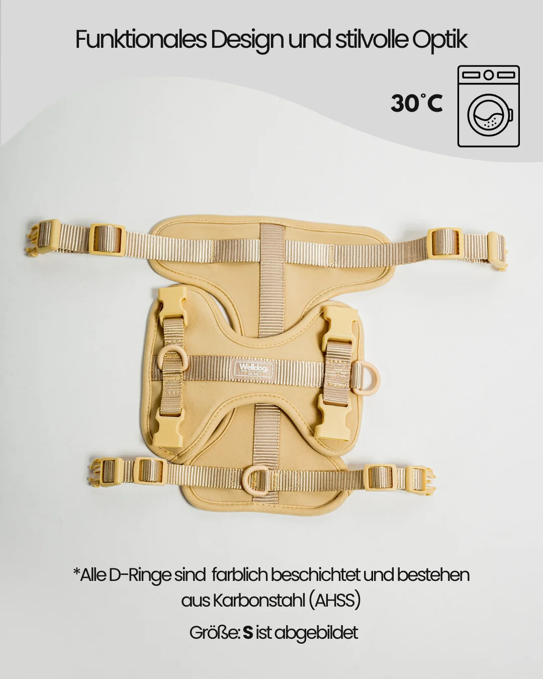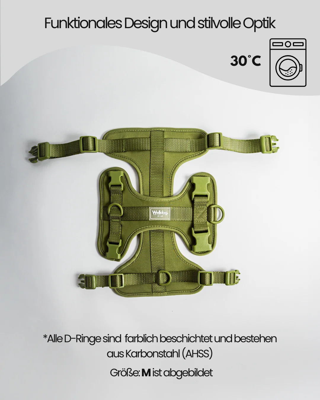 - Hundegeschirr: Aus recyceltem Nylon, gepolstert mit einem Neopren Hybrid-Gewebe inklusive Stretchanteil für die optimale Passform, BPA- und Phthalatfrei.
