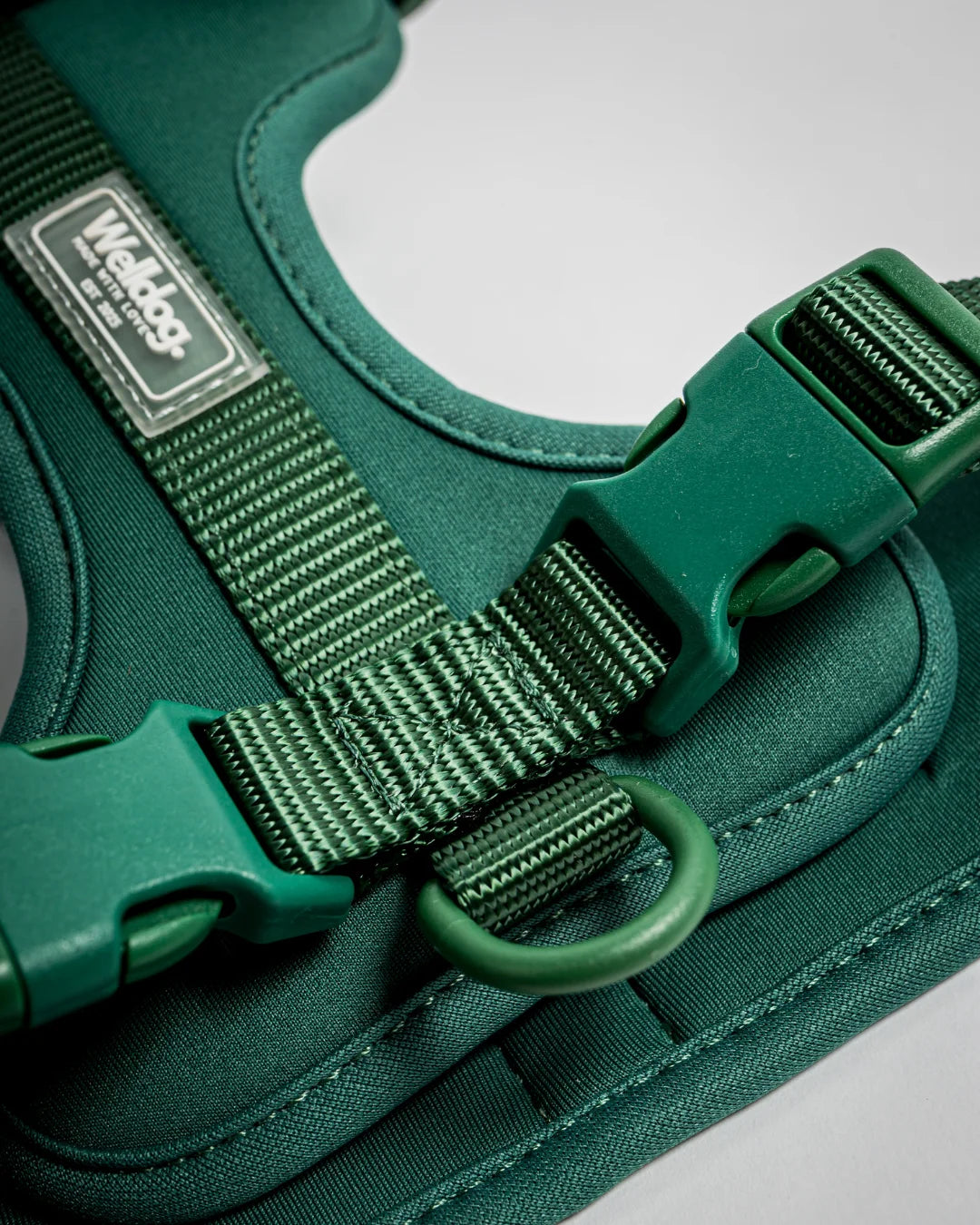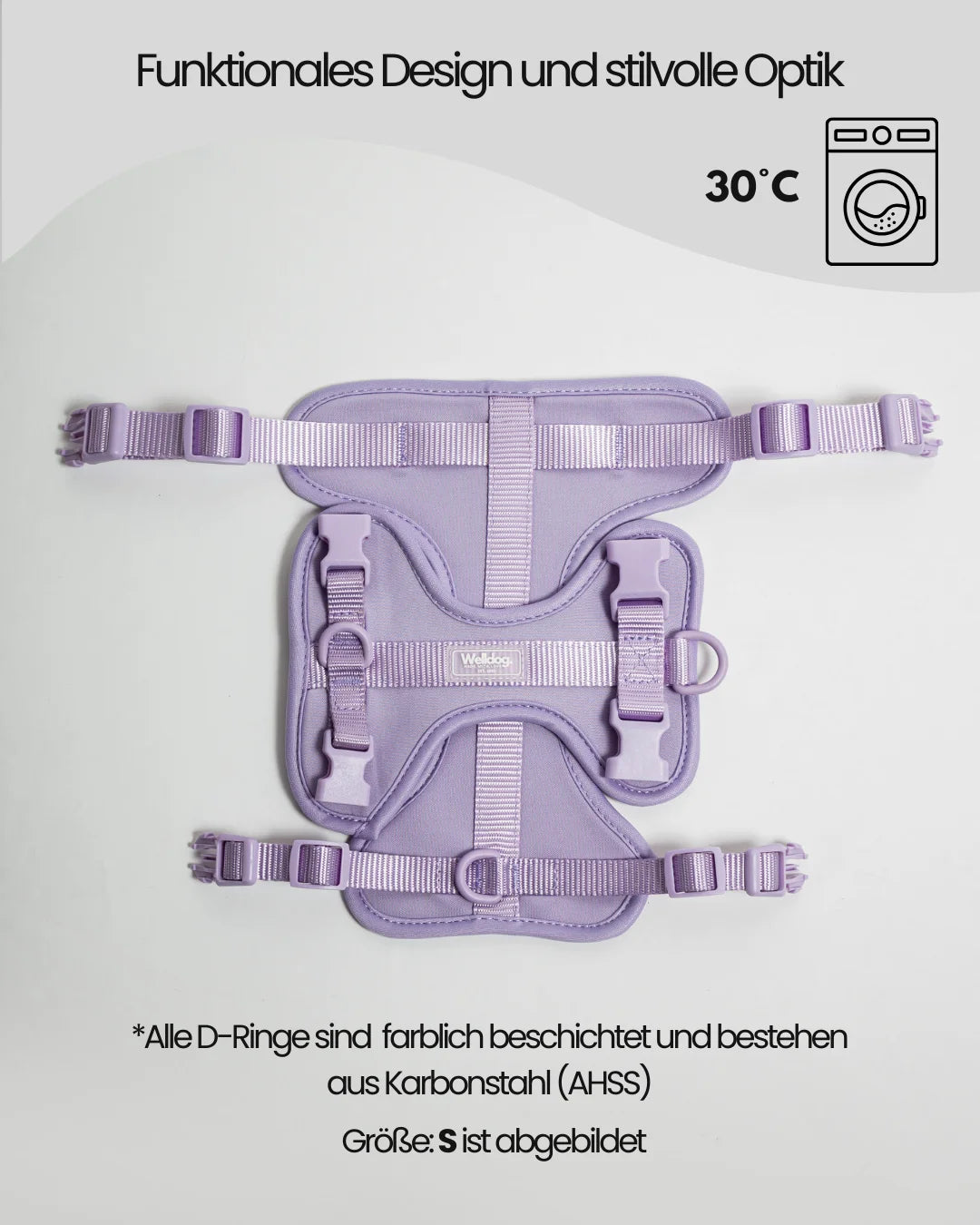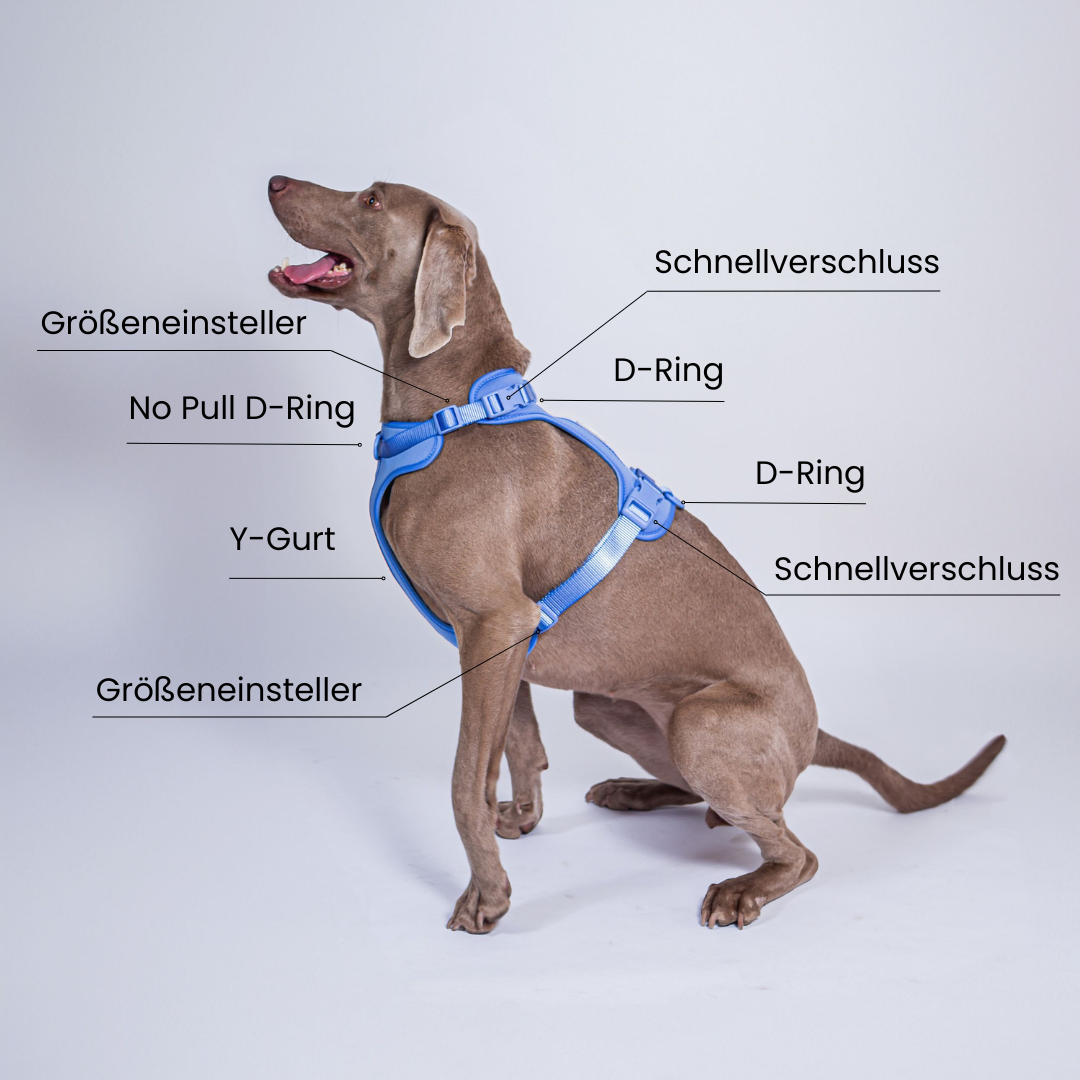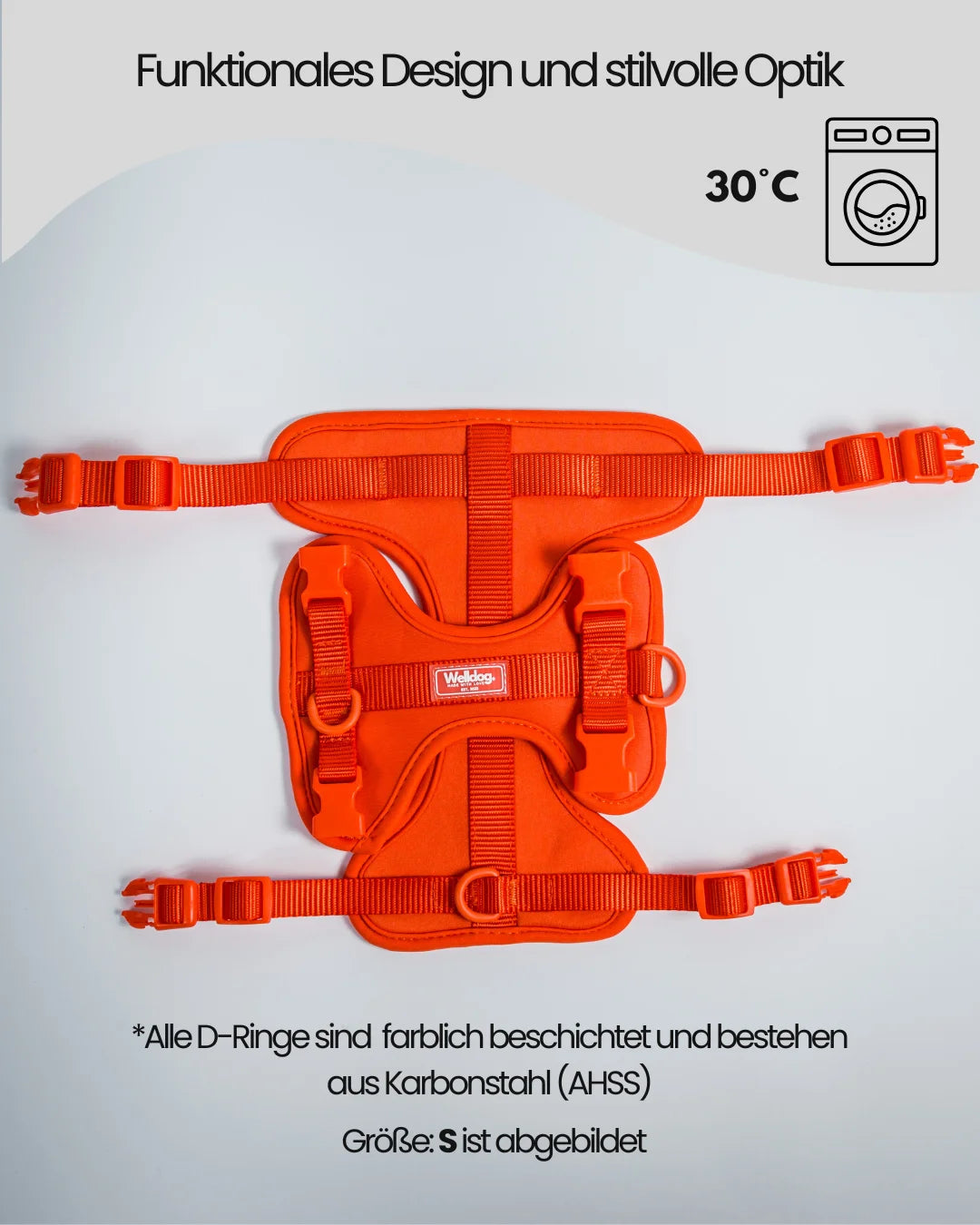 Gefertigt aus leichtem Neoprenmaterial mit einer innenliegenden, atmungsaktiven Mesh-Polsterung, bietet das Welldog. Geschirr ein Tragegefühl, das so angenehm ist, dass dein Hund es kaum bemerkt. Die Karbonstahl D-Ringe, farblich beschichtet und ebenso leicht wie robust, garantieren maximale Bewegungsfreiheit und Langlebigkeit – perfekt für Hunde, die sich gerne frei bewegen.