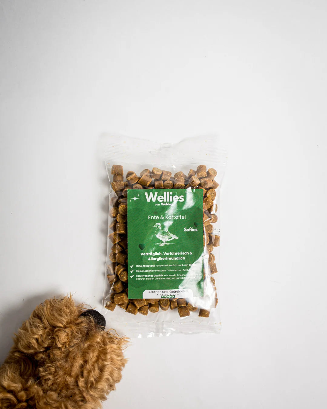 Ente & Kartoffel SoftiesIm Rahmen einer gesunden, natürlichen und artgerechten Ernährung darf auf dem Speiseplan eines Hundes eine Sache auf keinen Fall fehlen: Abwechslung! Genau wie wir Menschen wollen auch unsere Vierbeiner nicht jeden Tag das gleiche Essen im Napf vorfinden – und auch bei den Leckerlis darf es gerne abwechslungsreich zugehen.