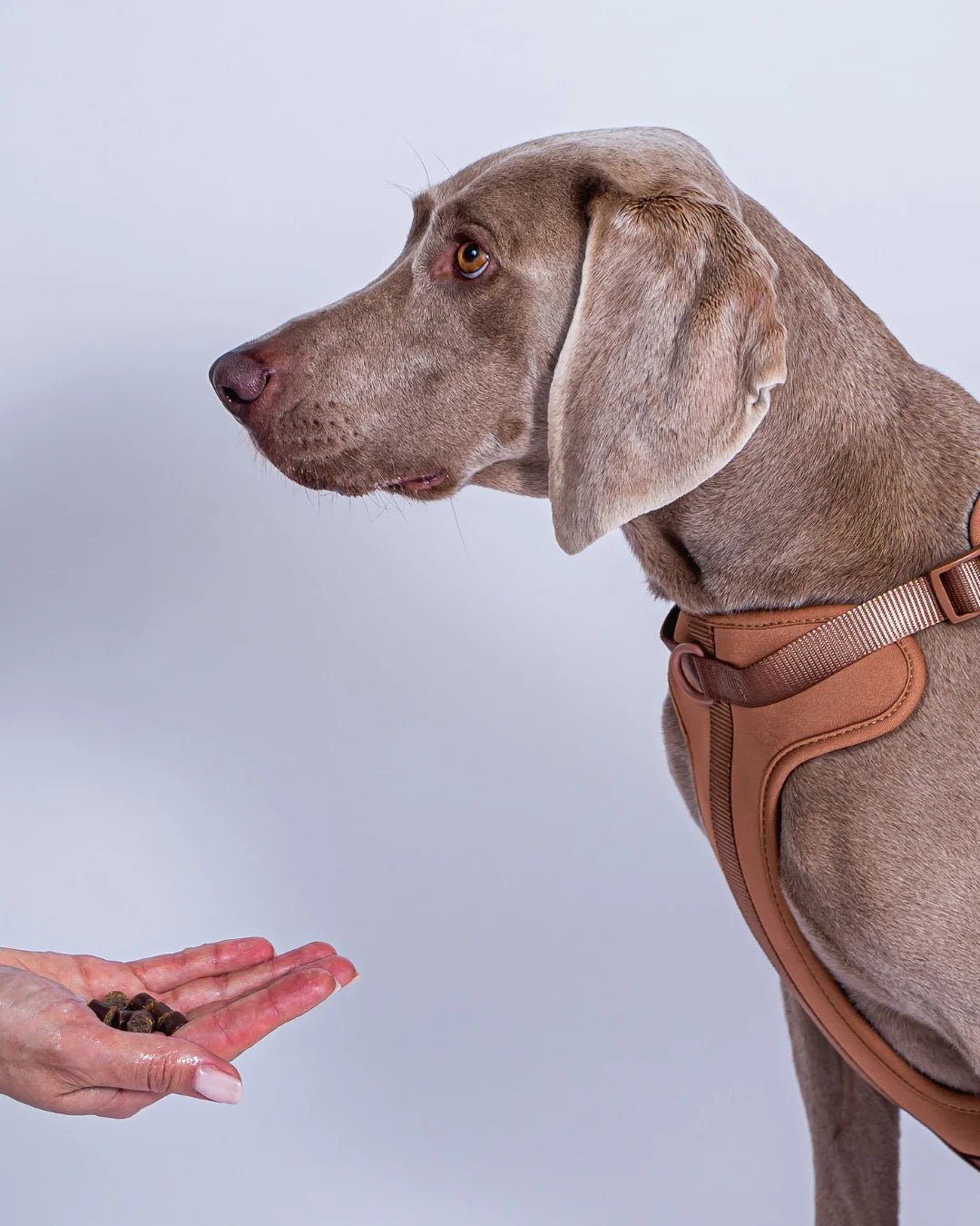 Die Luxus-Belohnungshappen aus Ente und Kartoffel eignen sich bestens für den Hundeplatz, als Belohnung während des Spaziergangs oder auch einfach mal so nebenher. Ob Welpe oder Senior: Kaum eine Fellnase kann den saftig-fleischigen Häppchen widerstehen. Da wir bewusst auf Konservierungsmittel verzichten, achte bitte auf eine kühle und dunkle Lagerung. So ist gewährleistet, dass die Kausnacks auch bei geöffneter Packung eine längere Zeit locker und frisch bleiben – auch wenn wir sicher sind, dass dein Hund die kleinen Köstlichkeiten lieber im Nu auffuttern würde.