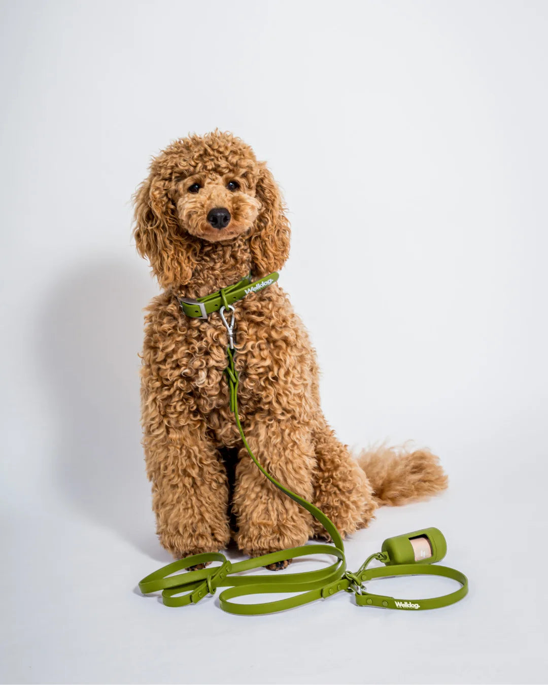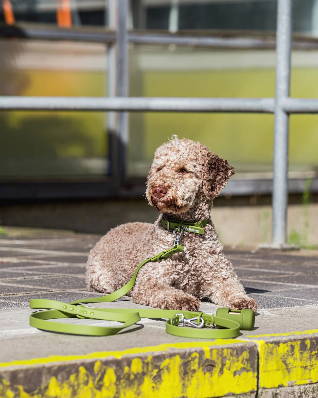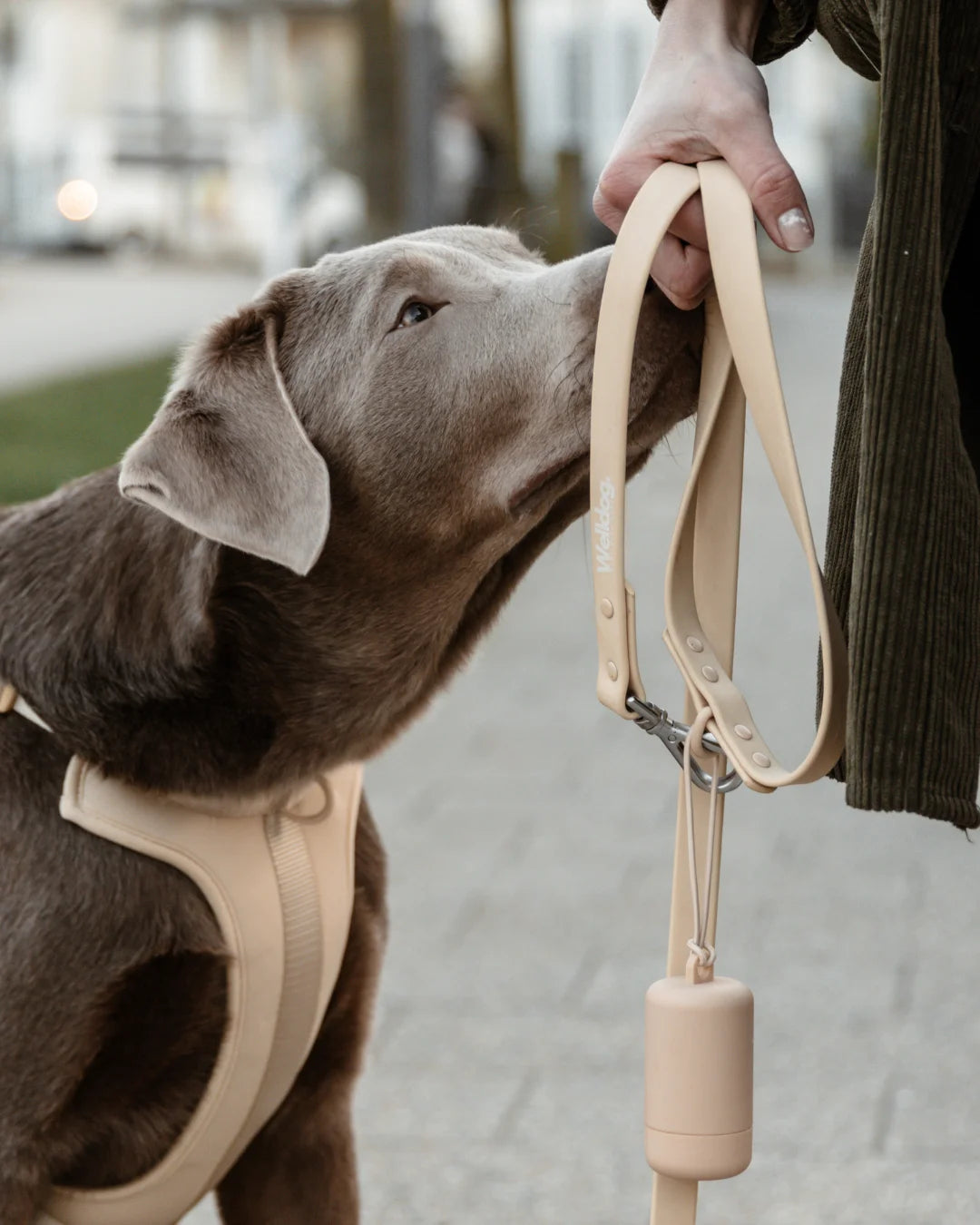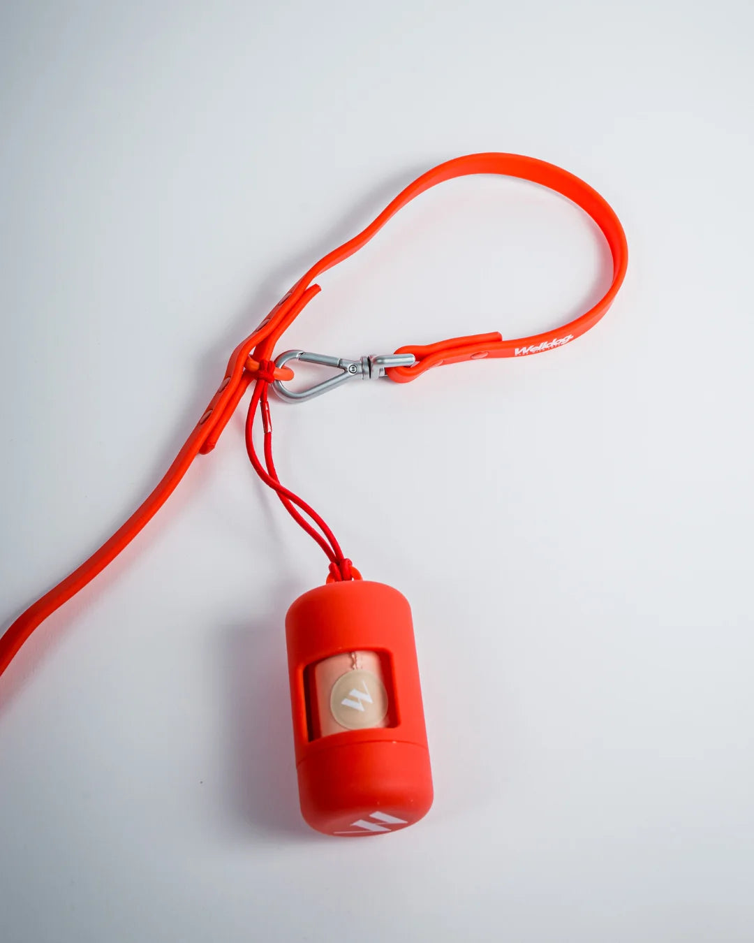 So ist der Poop Bag Spender bequem am Leinen-Griff befestigt und einsatzbereit für die nächste Gassirunde!